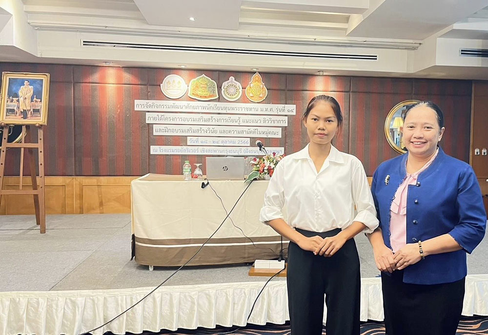 นางสาวพัชราภรณ์ สร้างการนอก เข้ารับการฝึกอบรมพัฒนาศักยภาพนักเรียนทุนฯ ภายใต้โครงการเสริมศักยภาพการเรียนรู้ แนะแนว ติววิชาการ และศึกษาดูงานเศรษฐกิจพอเพียง ระหว่างวันที่ 17-24 ตุลาคม 2566 ณ โรงแรมรอยัลริเวอร์ เชิงสะพานกรุงธน กรุงเทพมหานคร