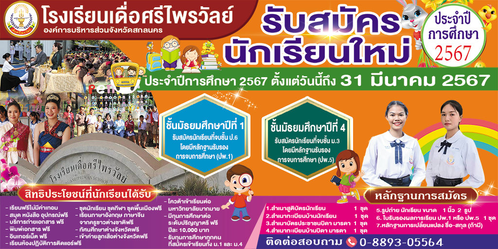โรงเรียนเดื่อศรีไพรวัลย์ เปิดรับสมัครนักเรียนใหม่ ประจำปีการศึกษา 2567