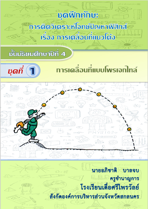 ชุดฝึกทักษะการคิดวิเคราะห์โจทย์ปัญหาฟิสิกส์ เรื่อง การเคลื่่อนที่แนวโค้ง ระดับชั้นมัธยมศึกษาปีที่ 4 ชุดที่ 1 เรื่อง การเคลื่อนที่แบบโปรเจกไทล์ ผู้วิจัย นายอภิชาติ บาลจบ ครูโรงเรียนเดื่อศรีไพรวัลย์ สังกัดองค์การบริหารส่วนจังหวัดสกลนคร